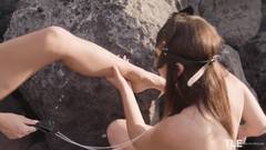 Matty e Delfina são duias gatas muito sensuais que estão ao ar livre a ter o melhor sexo lésbico de sempre. Cunnilíngua e muita paixão para desfrutar.