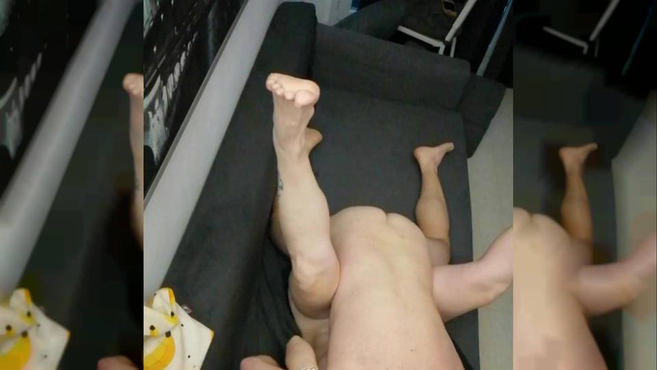 Mulher casada, loira e sexy é fodida com força no sofá, tentando ser discreta para não se queimar