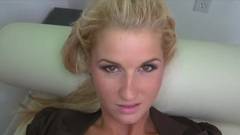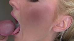 A loira Denisa chupa o pau dele várias vezes e depois o fode. Depois ele goza em sua boca!