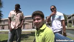 Dois pênis negros gigantes para arrebentar a bunda desse gay branco
