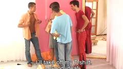 Cinco homens gays se reúnem para satisfazer os paus uns dos outros em um vídeo de orgia. Eles são bonitos e estão com muito tesão!