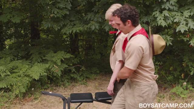 Dois escoteiros fodem o traseiro um do outro em um acampamento florestal ao ar livre