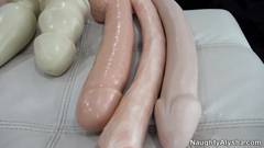 Alysha é uma Milf com curvas perfeitas e uma buceta incrivelmente elástica: ela pode gozar se empalando em dildos XXXL maxi.