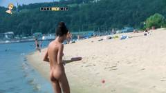 Essa nudista caminha e brinca na praia. Ela adora exibir seu corpo fabuloso e deixar nós, observadores, com tesão!