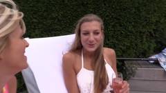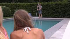 À beira da piscina, essa loira amadora não consegue deixar de chupar o pau dele, ser fodida no estilo cachorrinho e ter os peitos cobertos de porra!