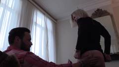 Essa loira amadora recebe um brinquedo sexual. Ela o usa na frente dos rapazes, mas prefere pegar os dois paus!
