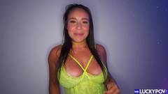 Em espanhol e inglês, Carmela Clutch é uma caçadora de prazer multilíngue que tem sua bela bunda redonda rasgada e sua buceta fodida por toda parte.
