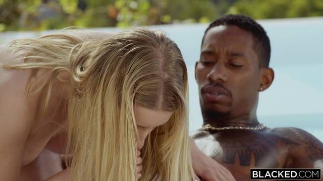 Freya Mayer está na varanda do hotel com o seu negro e decide foder ao ar livre sem se importar que todos a vejam na piscina. Ela gosta do interracial.