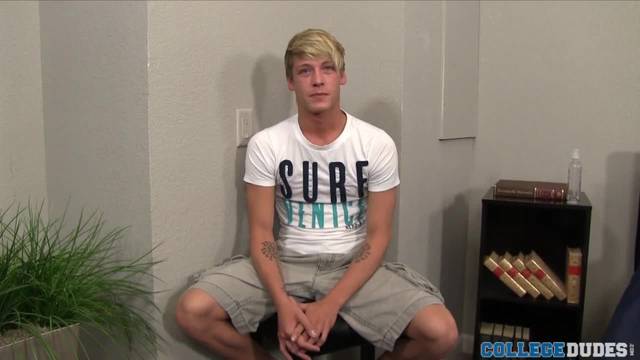 Um jovem loiro com um corpo nu e quente se masturba sozinho até ejacular sobre todo o seu pau. Ele fica muito sensual e nos faz excitar.