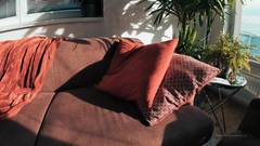 Uma jovem está sentada em uma poltrona, evidentemente recém-saída do banheiro. Ela segura um vibrador grande na mão e fode sua buceta raspada.