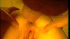 Lisa Melagio, vestindo lingerie preta e calcinha de couro aberta na virilha, mostra-se em toda a sua beleza enquanto é fodida no estilo cachorrinho.