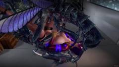 Ela estava sozinha em uma grande nave espacial quando um estranho alienígena se aproxima dela e a controla para transar com ela sem resistência.