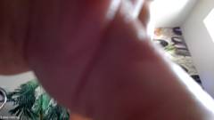 Uma linda morena fica nua para nos dar um close-up dela, provocando-nos com os dedos em sua buceta no chão.
