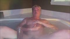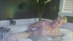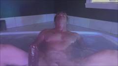 Dom Rod, ainda aproveitando o banho para se satisfazer com um grande vibrador de pênis preto em seu cuzinho apertado!