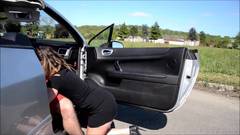 No meio do dia, ela me faz um bom boquete, correndo o risco de ser flagrada pelos espectadores. Ela chupa bem na frente da porta do carro