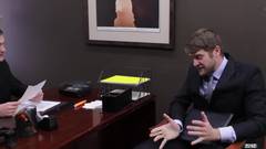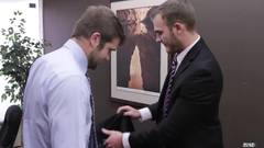 No escritório, Christian Wilde e Colby Keller fazem amor e terminam por gozar ao mesmo tempo, com as gravatas postas e as picas duras!