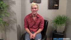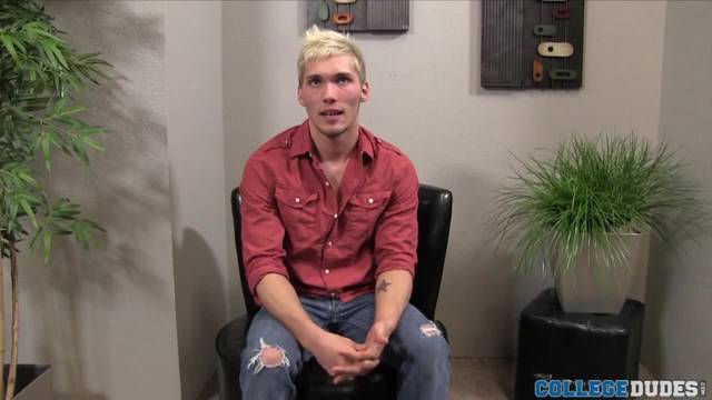 O loiro Brandon Bloom tira a roupa e acaricia seu grande pau até que goza em cima, na sua cadeira mais confortável. Este loiro nos deixa com o pau duro!