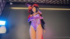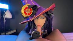 Mona, ela está toda vestida como cosplayer para montar um pau de cowgirl em Pov e fazê-lo gozar em todo o seu corpo!