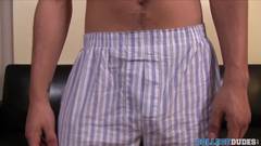 O jovem Colton Spark quer compartilhar conosco seu momento íntimo de masturbação. Vejam como ele se deita nu em um sofá de couro e se punheta sua grande pica.