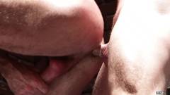 Depois de uma longa sucção de pau, Billy Santoro e Jimmy Johnson se lançarão em uma penetração apaixonada do cu com suas grandes picas duras.