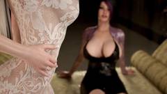 Em uma sala de estar, uma mulher está sendo lambida e fodida por um futanari, que está lhe dando muito prazer com seu pau enorme.