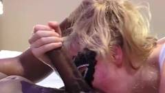 Uma jovem loira mascarada chupa um pau preto e é fodida em uma posição com a qual sonhava há muito tempo, gozando em seu rosto!