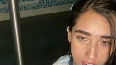 Uma vadia morena de bunda grande e peitos bonitos se excita com a dança do poste e precisa se masturbar! Ela enfia um pequeno vibrador em sua bunda.