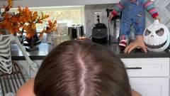 Uma garota jovem e com grandes peitos naturais, se despe em sua própria cozinha e mostra sua masturbação travessa com seu consolador favorito!