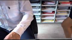 Uma secretária atraente senta-se atrás da mesa de seu chefe e, pensando nele, se masturba. Felizmente, ele a fode por sua vez.