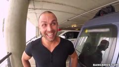 Ela acabou de chegar ao aeroporto depois de uma viagem. Oferecem-lhe dinheiro para chupar um pau no estacionamento, e ela aceita!