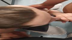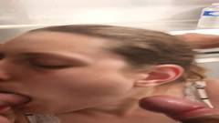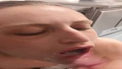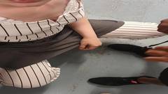 Ela é uma garçonete desagradável que vai para a cozinha dos fundos com dois colegas de trabalho que gostam de ter seus paus chupados muito bem.