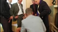 ![Homens e uma mulher transam com um submisso em um gangbang Homens e uma mulher transam com um submisso em um gangbang]()