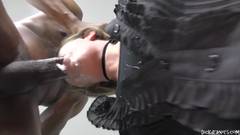A loira Savannah faz um belo boquete em um grande pau negro e o masturba até que ele goze em seu rosto e em sua boca.