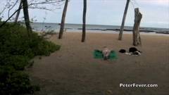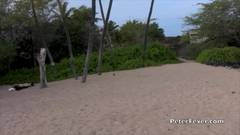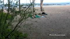 Um homem asiático decide tomar um banho de sol no Havaí, nu, e nos tenta com seu pau, enquanto está deitado em sua toalha de praia.