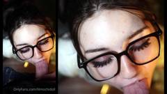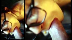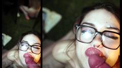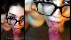 Isso sim é felação amadora. Uma garota de óculos chupa cada centímetro do pênis de seu amante nesse vídeo em close-up, cru e engolidor.