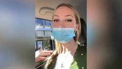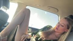 Essa loira amadora gostosa se masturba com um brinquedo sexual em sua buceta depilada dentro de um carro em movimento.