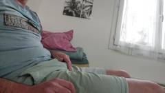 Preciso relaxar, então puxo meu short para baixo e masturbo meu pênis até gozar. Estou gozando em todos os lugares agora que não há ninguém para me incomodar.