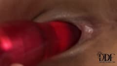 Um vibrador bem grande para a bela porno star empurrar generosamente em sua buceta e na frente da câmera ;)