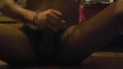 Gay excitado de cueca feminina, masturbando seu pau grande sem parar, enquanto se senta no chão e nos mostra seu pau por toda parte.