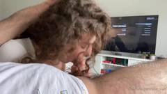 Gil, de cabelos encaracolados, mostra suas habilidades de sucção em Pov com o pau grande de seu amante. Não perca.