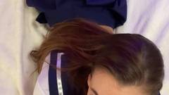 A garota cosplayer de uniforme hentai chupa o pau de seu amante nesse vídeo amador. Ela também é fodida por trás.
