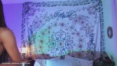 Essa garota magra, nua e de cabelos compridos fica confortável na cama e se masturba para seus espectadores fiéis.