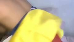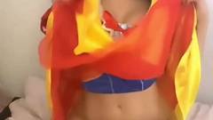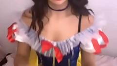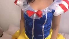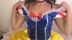Garota sexy vestida de Branca de Neve, sentindo falta de seus sete anões, então ela se masturba em sua buceta depilada, sozinha.