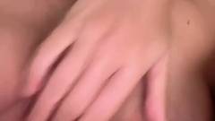 Não perca essa linda garota, com peitos empinados, dedilhando sua buceta, nua, enquanto está deitada.