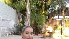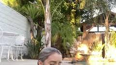 Essa garota gosta de filmar seu orgasmo, dentro da piscina, ao ar livre. Que puta safada ela é!