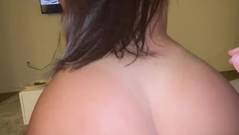 A morena sexy deixa seu homem ereto excitado com um boquete e um footjob e monta em seu pau, no estilo cowgirl invertido.