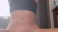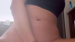 Uma jovem vadia no cio tem um vibrador vermelho grosso. Ela o coloca no chão, agacha-se e, com a câmera observando, fode a si mesma como se fosse um pau