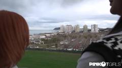 Uma ruiva brasileira chupa e é fodida com um grande pau trans e recebe 1 litro de esperma bem na cara.