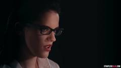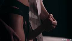 Mia, de lingerie e meias pretas, transa com a enfermeira Maria Pie com um vibrador, dando-lhe uma foda muito prazerosa