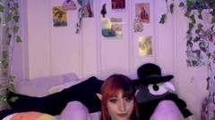 Uma vadia ruiva se veste com suas orelhas de elfo e mostra a masturbação safada que está fazendo para a câmera com um grande vibrador.